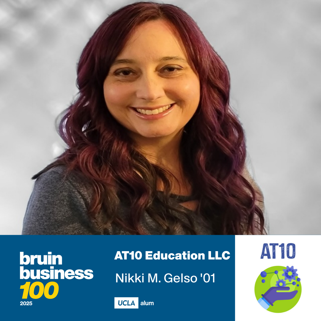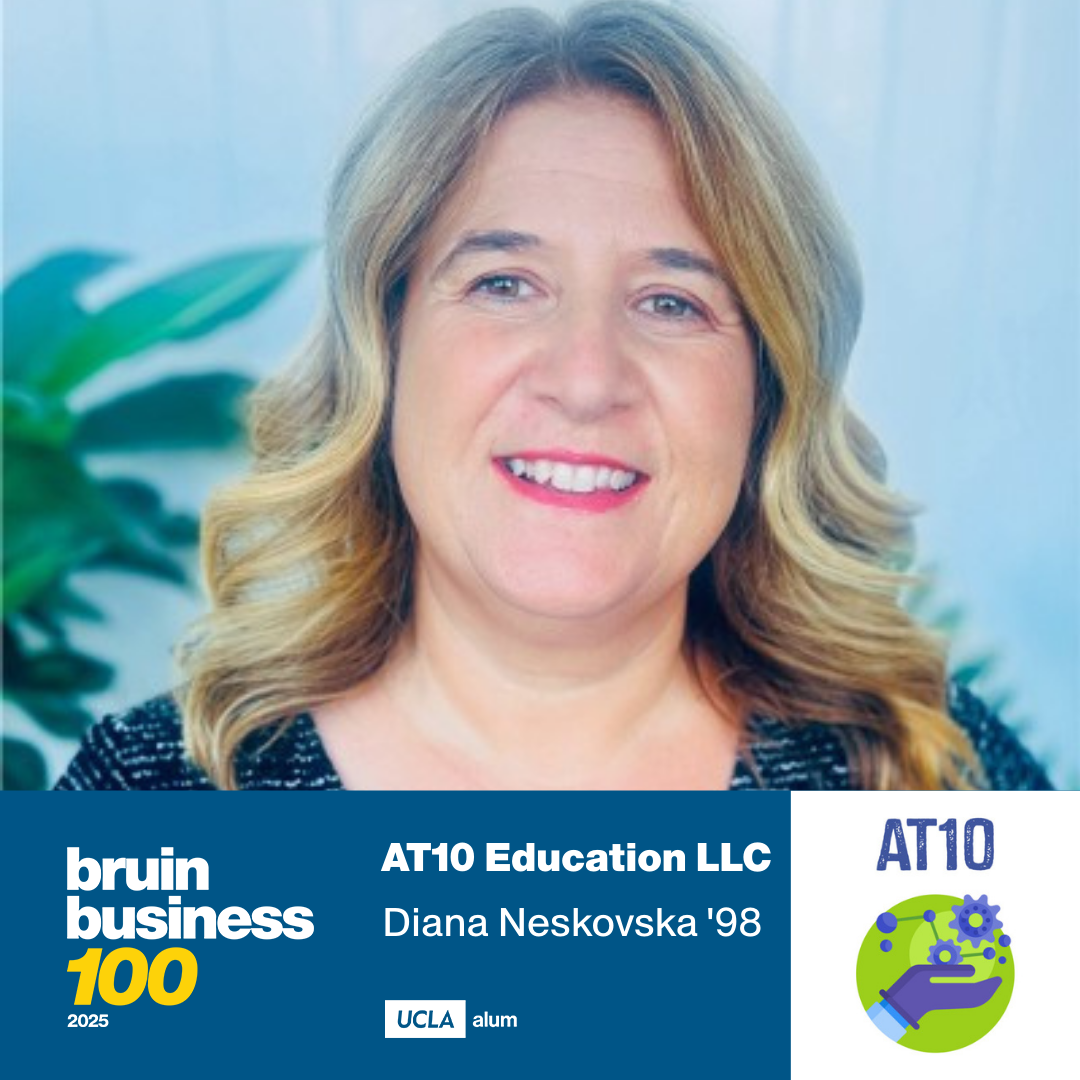 AT10 Education LLC is AT10 Education LLC is proud to have Diana Neskovska and Nikki Gelso honored as part of Bruin Business 100 which recognizes exceptional UCLA alumni entrepreneurs. These alumni are founders, owners and visionaries in business that have inspired innovation and expanded the Bruin network.